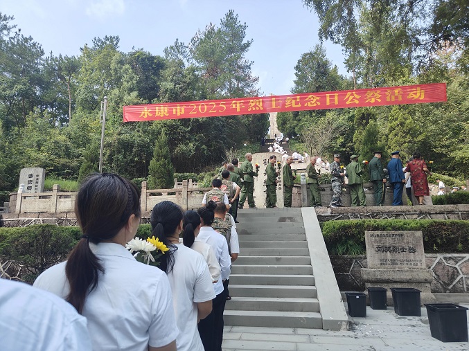 清晨的阳光洒满刘英烈士陵园,由市四套班子领导、市有关单位主要负责人、方岩镇全体班子成员、驻永部队官兵代表、消防救援大队指战员、大司巷小学少先队代表、烈士遗属代表、军休干部代表、抗美援朝老兵代表及参战老兵代表、爱国拥军促进会志愿者等组成的队伍,整齐肃立于纪念碑前,向烈士们致以最崇高的敬意。当礼兵手抬花篮走上烈士纪念碑前摆放,全体人员一起前往烈士纪念碑献上鲜花,看着纪念碑上镌刻的英名,目光中饱含敬仰与追思。
