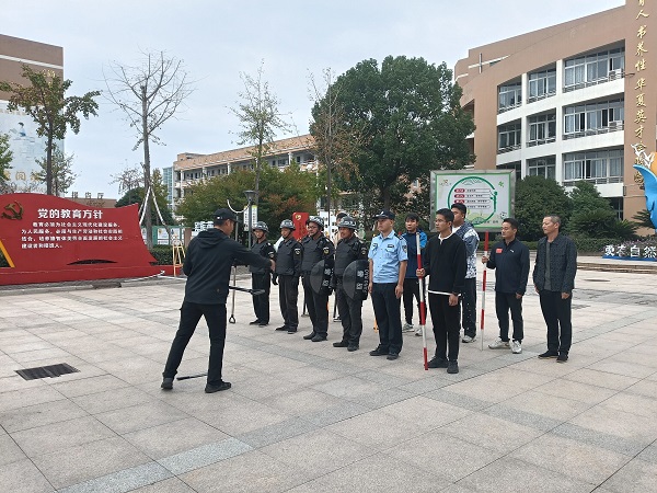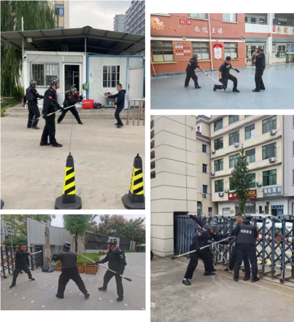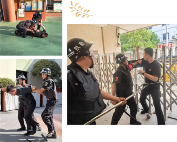 为保障演练成效,猎人特卫提前部署专业化培训体系:从8月组织全体保安员开展理论+实操培训,涵盖防暴恐处置、急救技能等专题,到针对各校安保短板开展微培训专项,制定“一岗一策”计划,通过小规模、高频次培训提升技能。一次又一次的培训解说让每位保安员熟稔于心,从应对突发暴恐事件的反应流程到器械使用技巧,能够快速且有效阻截“危险”。