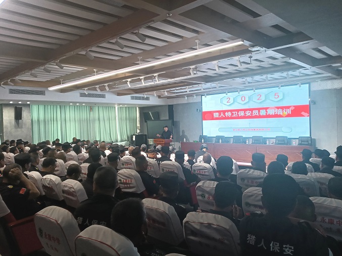 在这个充满活力的暑期,浙江猎人特卫安保集团有限公司圆满完成了2025年暑期保安员轮训计划,旨在全面提升保安队伍的专业素养与应急处理能力,为校园安全保驾护航。经过四天紧张而充实的培训,本次轮训于8月7日在永康中学圆满落下帷幕。此次轮训,不仅提升了保安员们的专业技能,更强化了他们的服务意识与团队协作能力,为公司塑造了一支更加专业、高效的保安队伍。