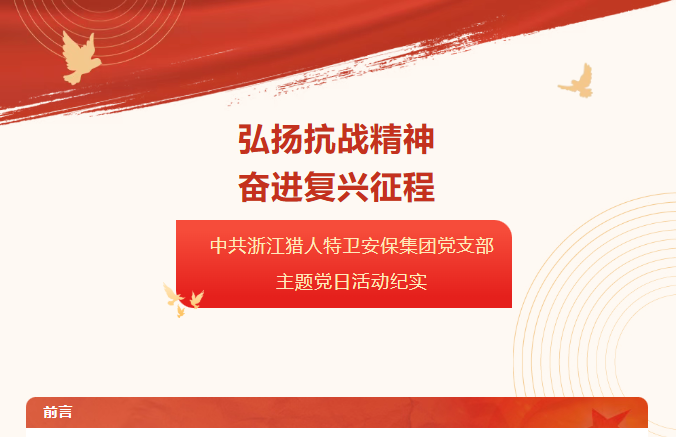 首页 >企业新闻弘扬抗战精神,奋进复兴征程— —中共浙江猎人特卫安保集团党支部主题党日活动纪实