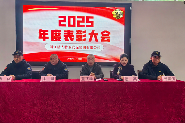 2025年度优秀保安表彰大会在热烈而庄重的氛围中圆满结束。这次大会不仅是对优秀保安的表彰和肯定,更是对全体员工的一次激励和鼓舞。相信在新的一年里,浙江猎人特卫安保集团有限公司的全体员工将以这些优秀代表为榜样,团结一心,奋勇拼搏,共同书写安保事业的新篇章!