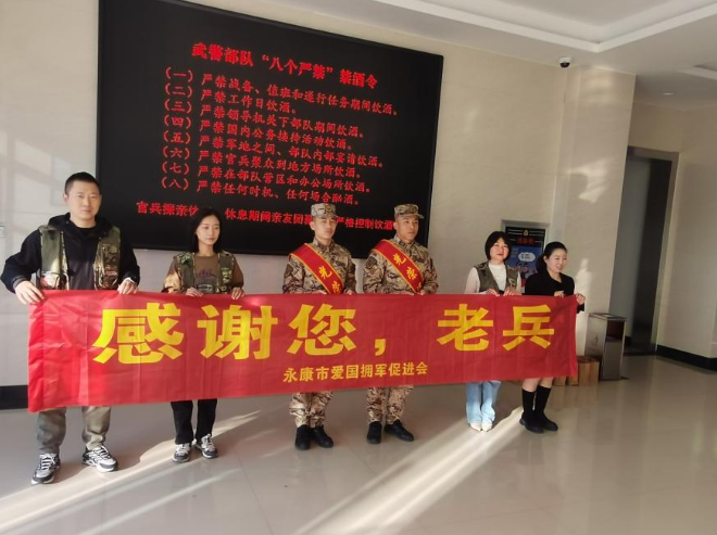 时序更迭,又一批老兵退役了。11月29日下午,永康市爱国拥军促进会副会长单位----浙江猎人特卫安保集团有限公司联合永康市退役军人事务局及其他会员单位一起欢送退役老兵。这批老兵在军营服役12载,他们把最好的时光和青春献给了国家、献给了军营、献给了永康。